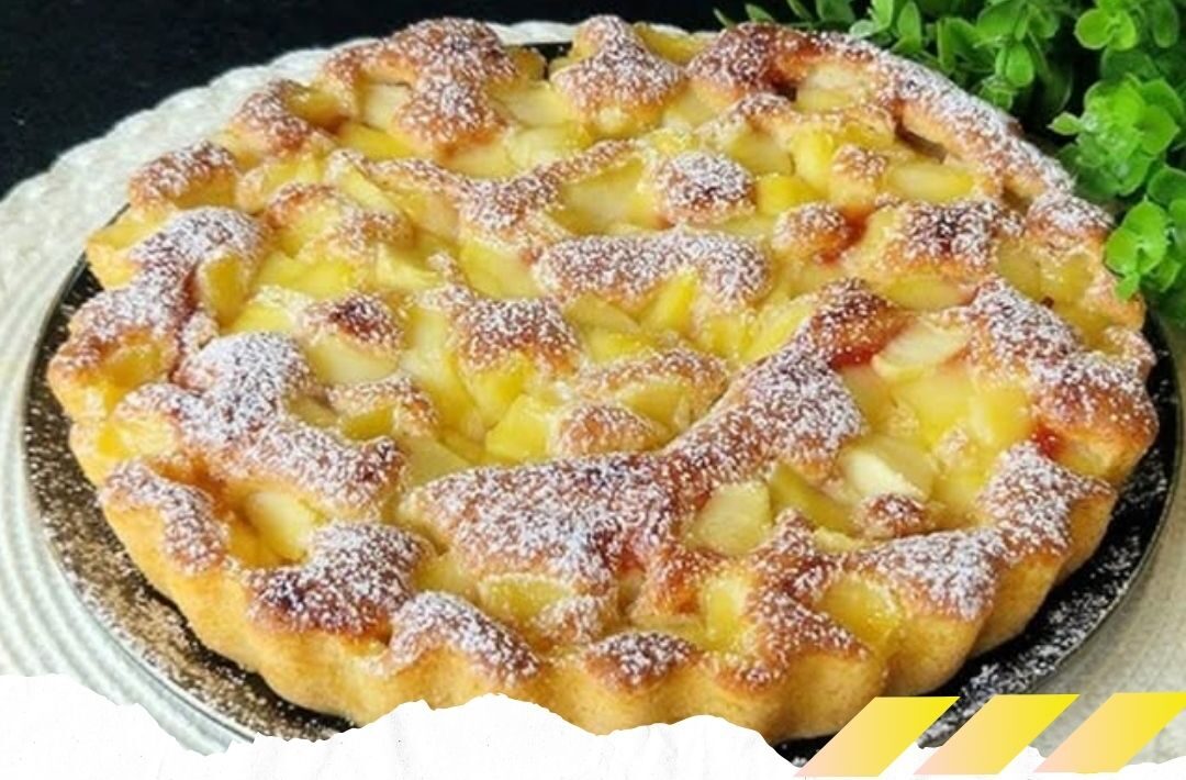 2. Jetzt die geschmolzene Butter hinzufügen und verrühren. Die Äpfel schälen und in Würfel schneiden. Die Form einfetten und Äpfel hinzufügen (nach Wunsch mit Zucker oder Zimt bestreuen). Den Teig über die Äpfel gießen und glatt streichen.