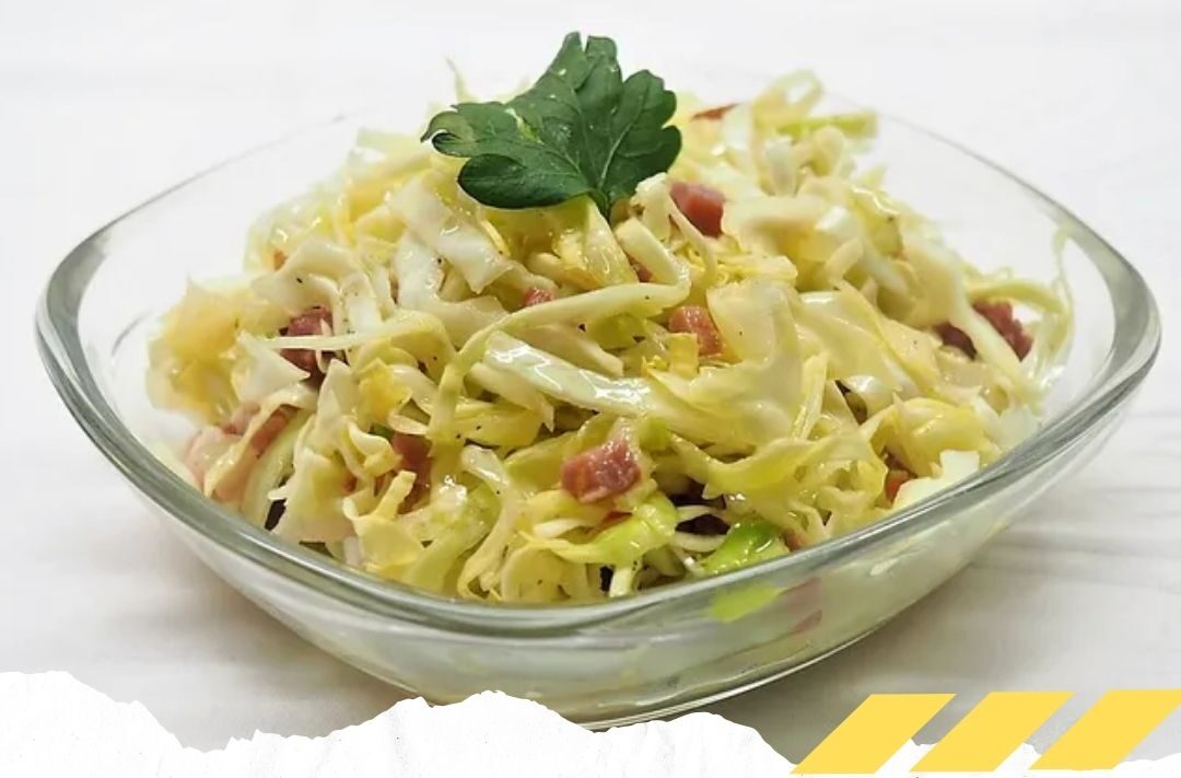 Salat Mischen: Den Kohl, Speckwürfel und Zwiebeln mit dem Dressing vermengen. Gut durchziehen lassen.