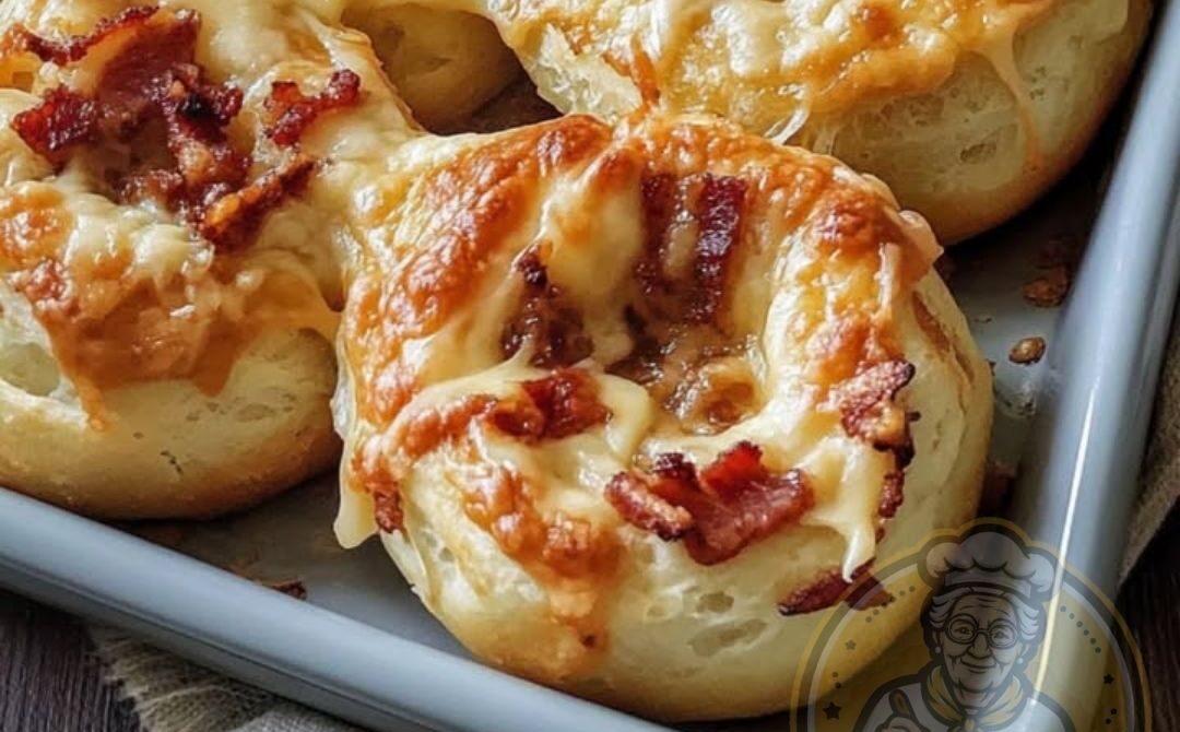 – Großteil der Schinkenspeckwürfel und des geriebenen Käses gleichmäßig darauf verteilen.