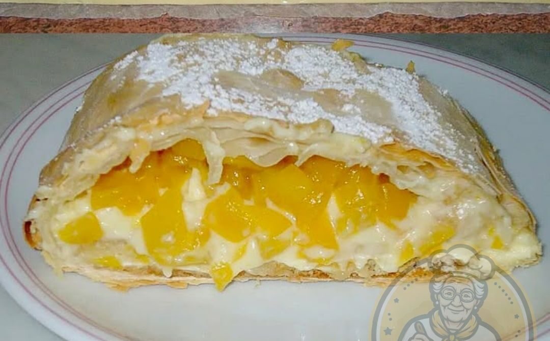 6- Im vorgeheizten Backofen bei 220 °C ca. 30 Minuten backen, bis der Strudel goldbraun ist.