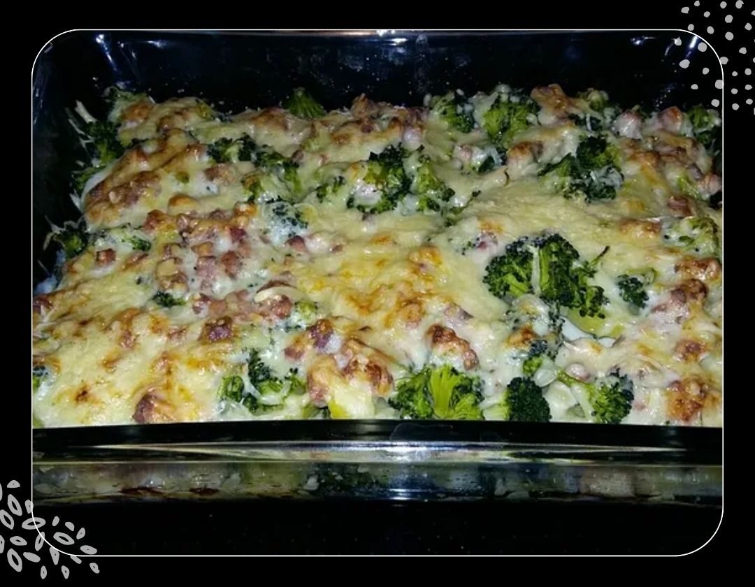 7- Kartoffeln und Brokkoli in eine gefettete Auflaufform geben.