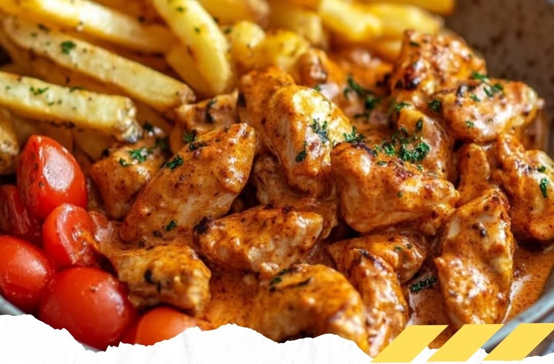 Butter Chicken Mit Knoblauchsauce Und Knusprigen Pommes