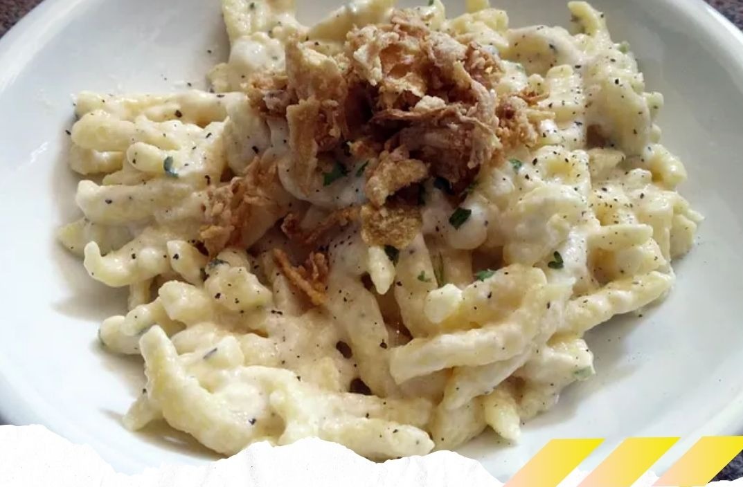 Die Spätzle in die Sauce geben und gut vermengen. Zum Schluss mit gehackter Petersilie bestreuen.