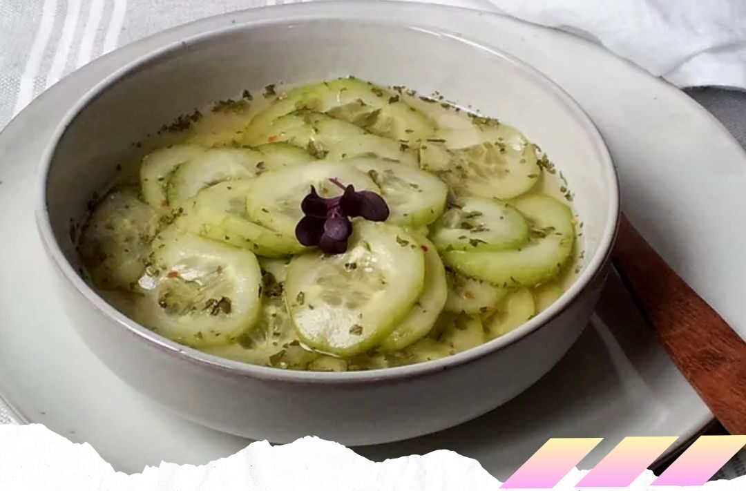 1. Gurken schälen und in dünne Scheiben schneiden. Zwiebel fein hacken.