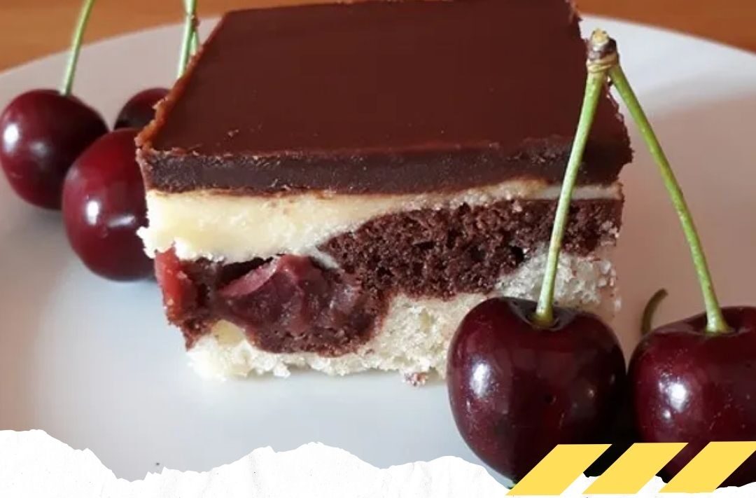 Die Eier mit dem Zucker dick-cremig aufschlagen, dann langsam das Öl einrühren. Mehl und Backpulver mischen und abwechselnd mit der Milch unterrühren. Die Hälfte des Teigs auf das Blech streichen. Den restlichen Teig mit Kakao und Milch vermischen und vorsichtig darüber verteilen. Die Kirschen darauf gleichmäßig verteilen.