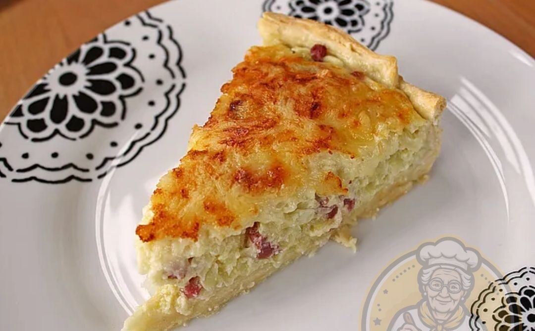 Die Zwiebeln schälen, halbieren und in Streifen schneiden. Den Speck klein würfeln. Beides in einer Pfanne mit Butter und Öl anbraten, bis die Zwiebeln Farbe nehmen. Die Pfanne vom Herd nehmen, die Eier-Sahne-Mischung dazugeben und gut unterrühren. Nach Belieben abschmecken.
