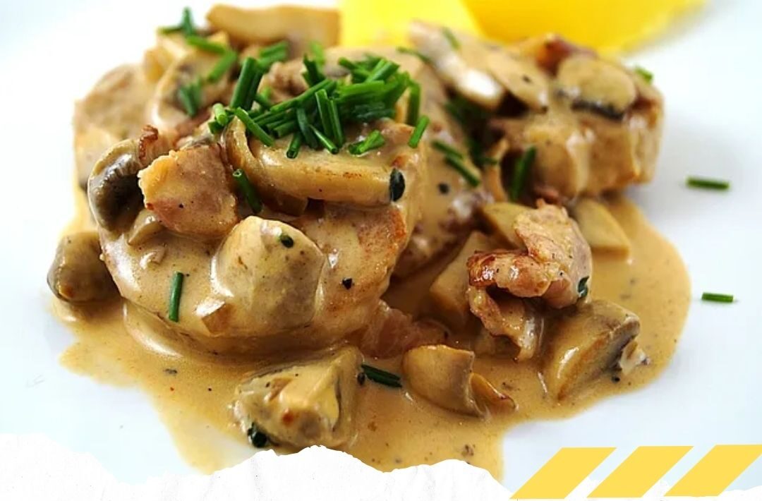 3. Sauce: Sahne, Gemüsebrühe, Sojasauce und Paprikapulver hinzufügen. Aufkochen lassen und das Fleisch wieder dazugeben. Mit Salz und Pfeffer abschmecken.