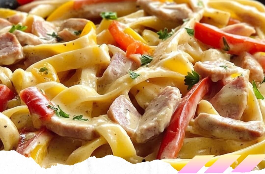 1 EL Speiseöl in einer Pfanne erhitzen. Paprika und Zwiebel hinzufügen und bei mittlerer Hitze ca. 10 Minuten bissfest garen.