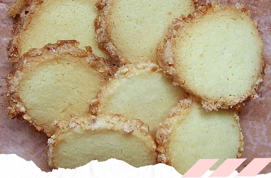 Aus dem Teig ca. 4 cm dicke Rollen formen, mit Eiweiß einpinseln und in der Mandel-Zucker-Mischung wälzen. Anschließend in 0,5 cm dicke Scheiben schneiden und auf ein mit Backpapier ausgelegtes Blech legen.