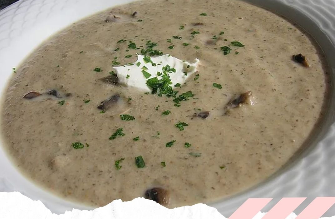 Suppe im Teller mit einem Klecks saurer Sahne oder Crème fraîche garnieren.