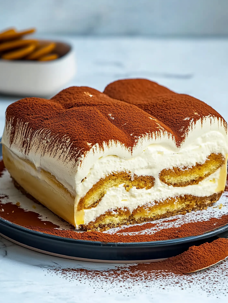 Stell dir eine Mischung aus Tiramisu und Eiscreme vor. Die Creme ist luftig, der Quark bringt Frische, die Löffelbiskuits sorgen für Struktur und der Kakao für Tiefe. Jeder Bissen schmilzt langsam – fast so, als würde der Kuchen sagen: „Bleib noch ein bisschen.“