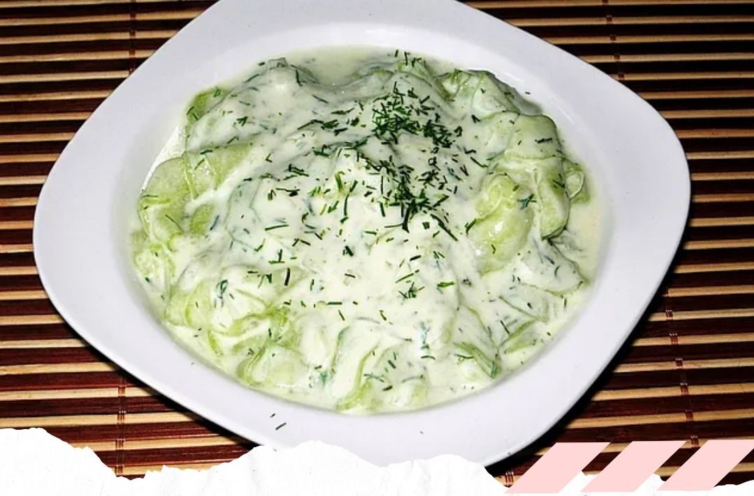 Die Joghurtsauce über die Gurken und Zwiebeln geben und alles gut vermischen. Mit einem Esslöffel Olivenöl abrunden und im Kühlschrank mindestens 1 Stunde ruhen lassen.
