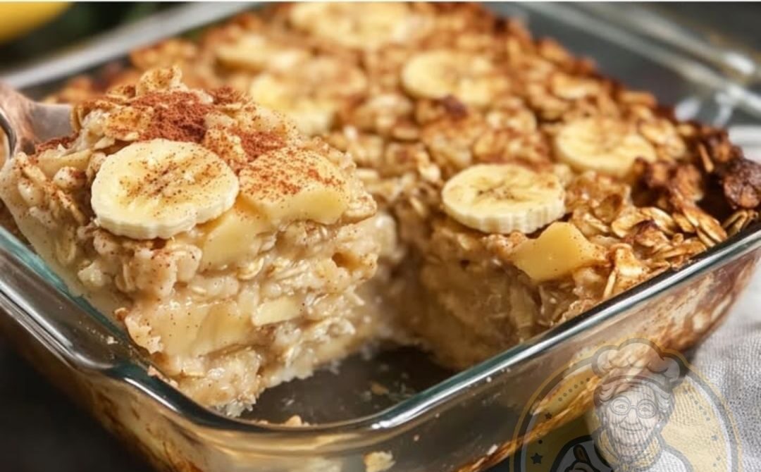 2- Haferflocken, Milch, Eier, zerdrückte Bananen, geriebenen Apfel und Zimt in einer großen Schüssel gut vermengen, bis eine cremige Masse entsteht.