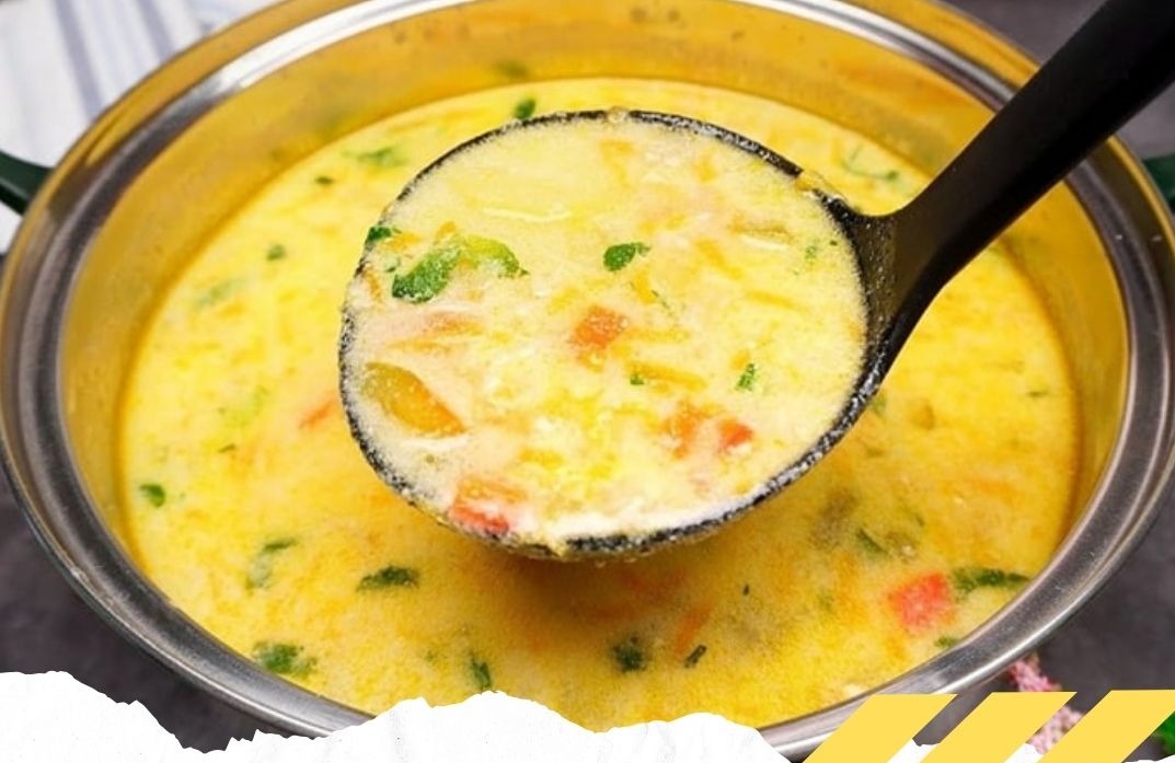 10- Etwas heiße Brühe zur Eiermischung geben, gut verrühren und dann langsam in die Suppe einrühren.