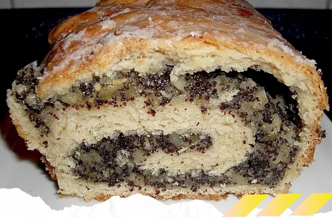 Eine Kastenkuchenform (25 cm lang) mit Backpapier auslegen, Mohnrolle hineinlegen und bei 175 Grad C ca. 1 Stunde backen. Auf einem Kuchengitter auskühlen lassen.