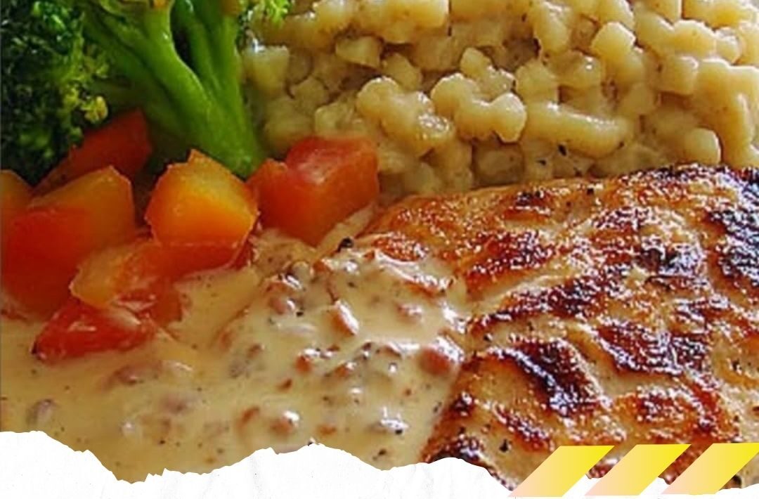 – Die Hähnchenbrustfilets mit der Sauce überziehen.
