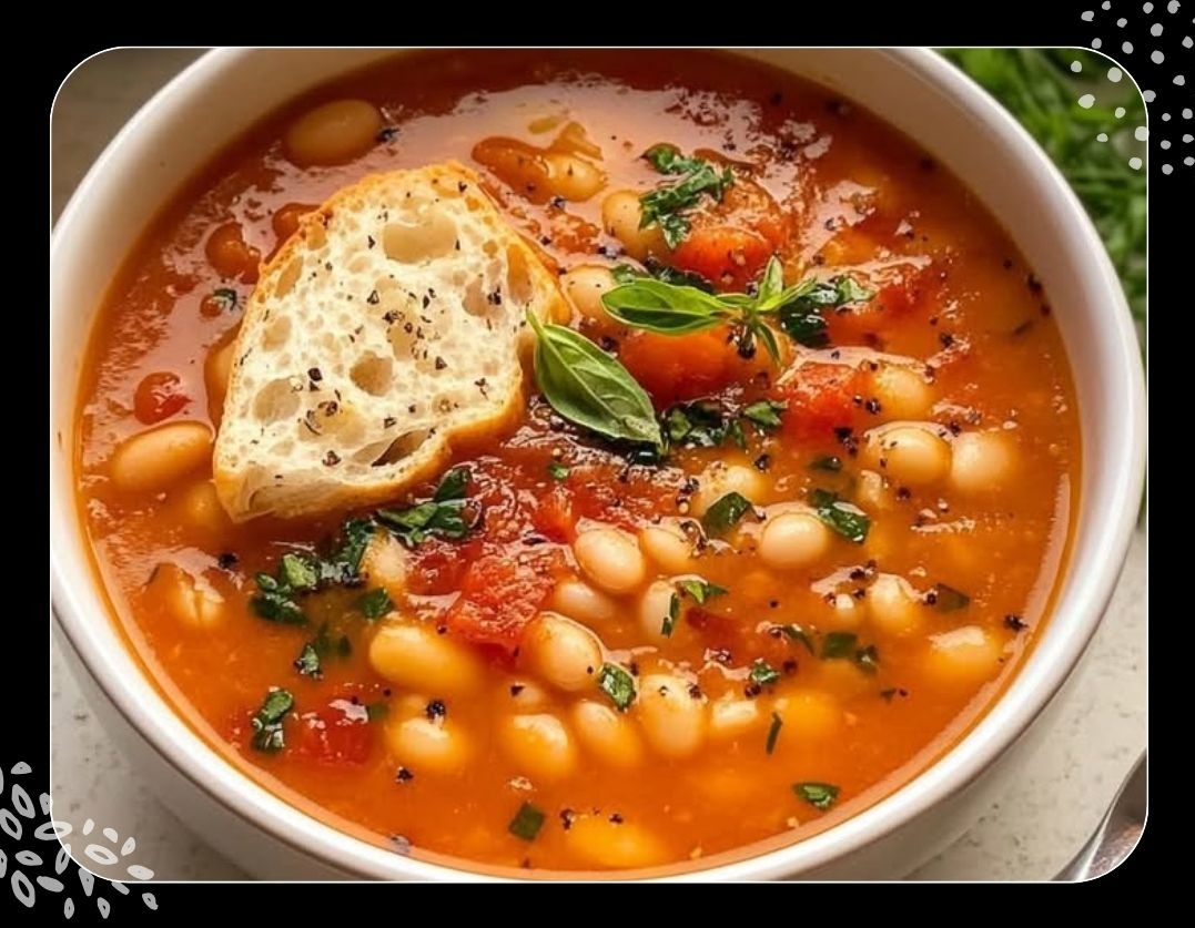 Herzhafte Suppe Mit Weißen Bohnen, Tomaten Und Knoblauch