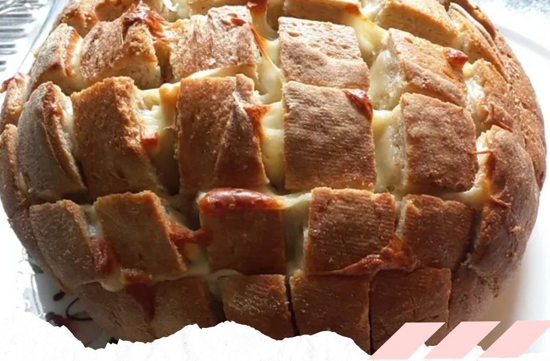 1- Das Brot zuerst längs, dann quer einschneiden, dabei nicht ganz durchschneiden, sodass Würfel entstehen, die noch am Boden zusammenhängen.