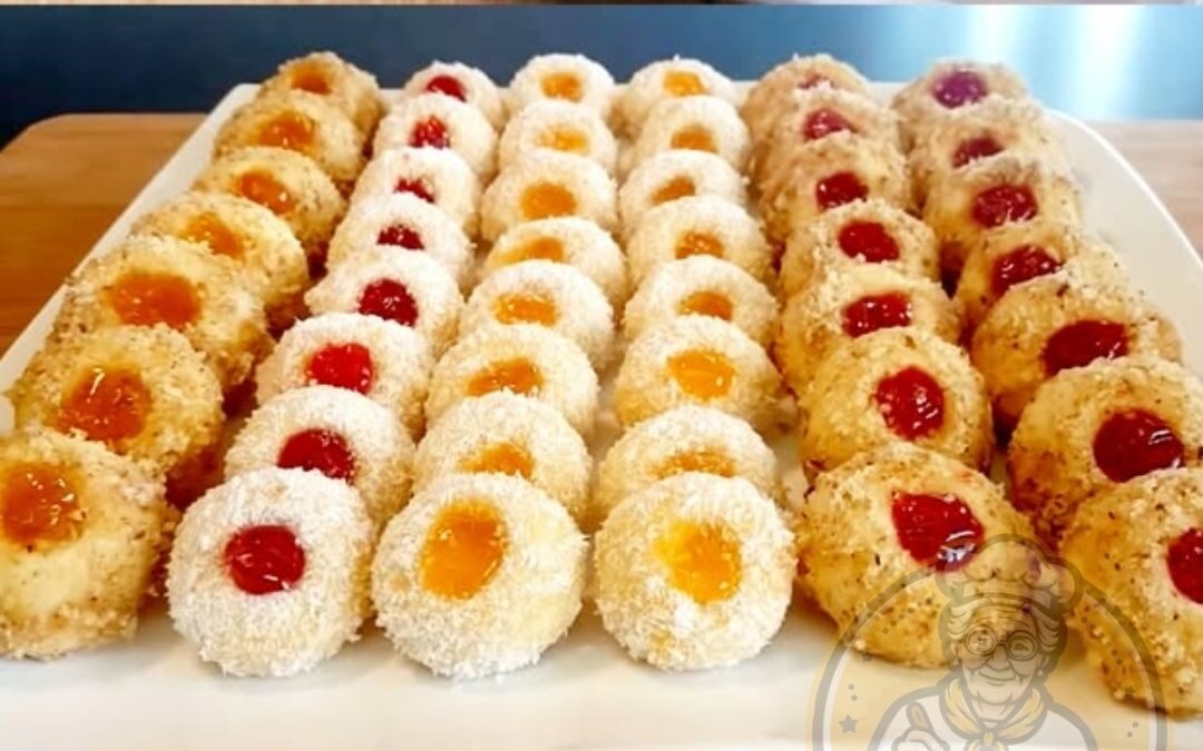 1. Alle Zutaten (außer Konfitüre und Puderzucker) zu einem glatten Teig verarbeiten. Den Teig in Alufolie wickeln und für eine Stunde im Kühlschrank ruhen lassen.