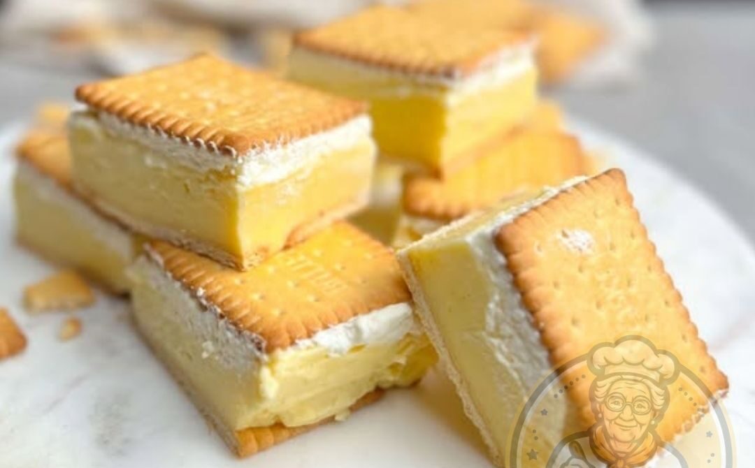 7- Abwechselnd Kekse und Vanillecreme schichten, bis alle Zutaten aufgebraucht sind.