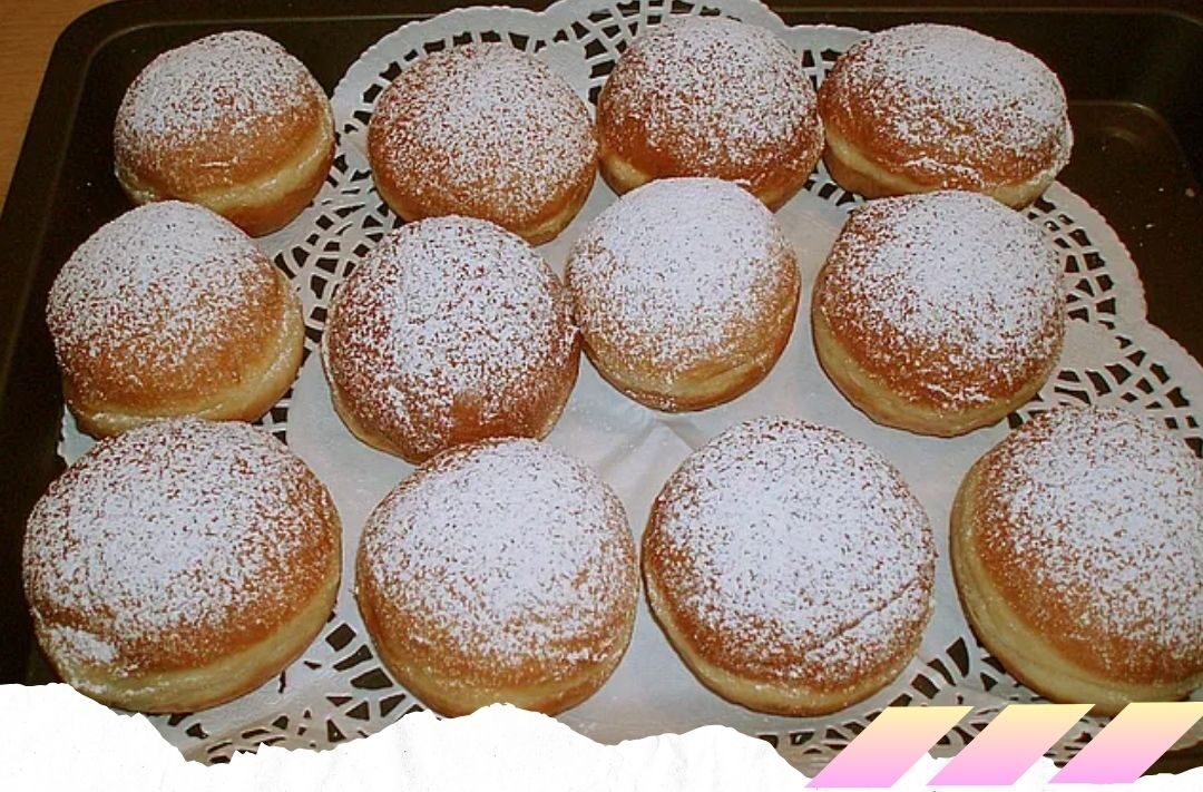 Bestäuben: Krapfen vor dem Servieren mit Puderzucker bestäuben.