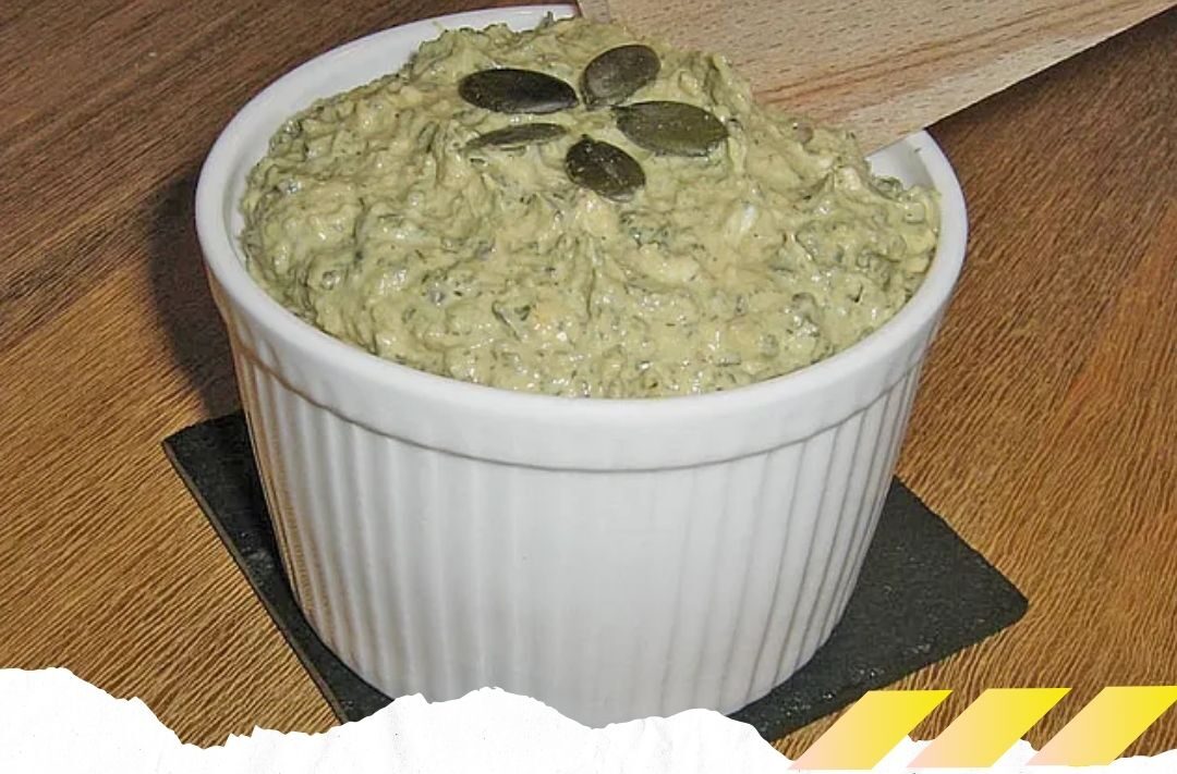 3. Kürbiskerne, Frischkäse, Joghurt, Olivenöl, Knoblauch und Zitronensaft in einer Küchenmaschine oder einem Mixer pürieren.
