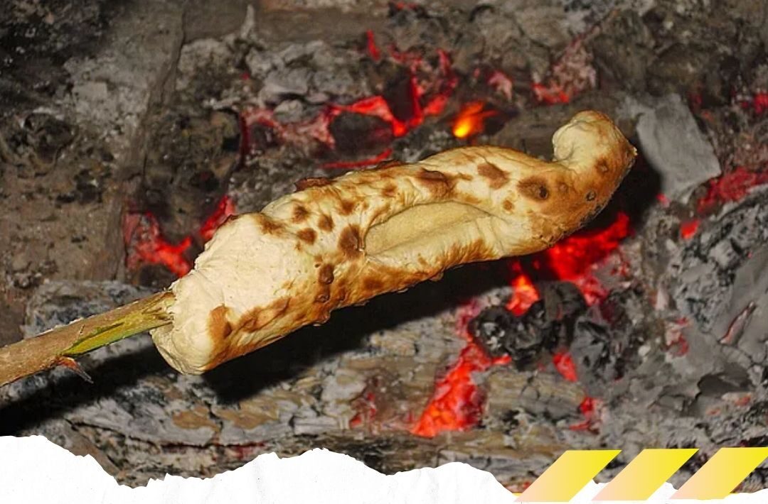 6- Über der Glut drehen und backen, bis das Brot knusprig ist.