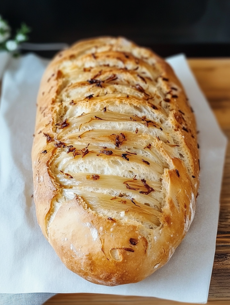Die Kombination aus karamellisierten Zwiebeln, lockerem Teig und knuspriger Kruste macht dieses Brot zu etwas ganz Besonderem. Egal ob zum Frühstück, Abendessen oder als Beilage – dieses Rezept passt immer.