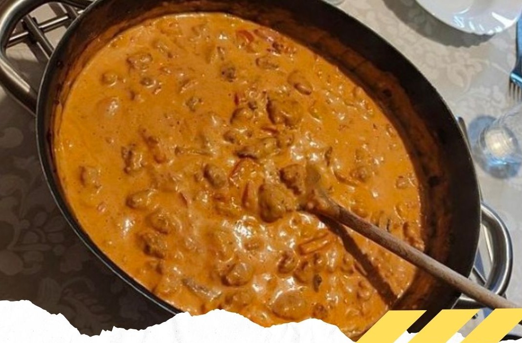 Zwiebeln fein hacken und mit dem Hackfleisch in Öl anbraten. Mit Salz, Pfeffer und Paprikapulver würzen. Anschließend in einen großen Topf oder eine Auflaufform umfüllen.