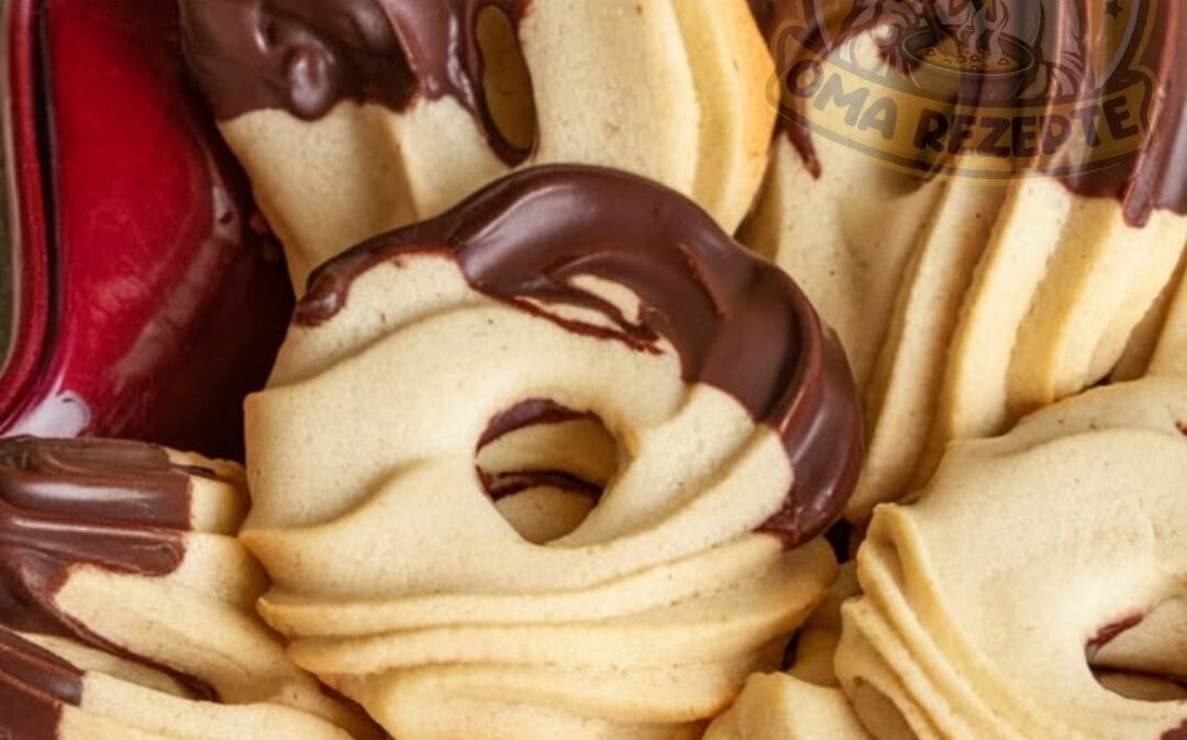 – Kekse zur Hälfte in die Schokolade tauchen und auf Backpapier legen, bis die Glasur fest ist.