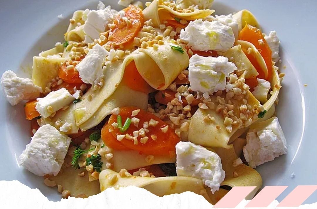 Die Petersilie unterheben und auf Tellern anrichten. Den Schafskäse zerpflücken und mit den gerösteten Mandeln über die Nudeln streuen.