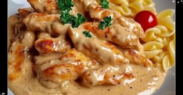 Zarte Hähnchenstreifen Mit Cremigen Nudeln In Sahniger Sauce