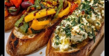 Bruschetta-Trio Mit Feta-Creme, Oliven Und Grillpaprika