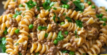 Nudeln mit Hack-Erbsen-Sauce