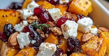 Gerösteter Kürbis mit Honig, Blaubeeren, Walnüssen und Feta-Käse