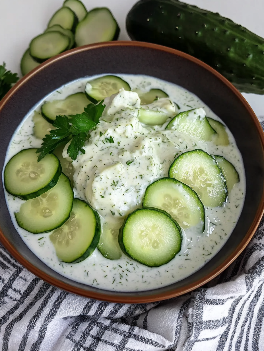 Während des Kochens werden die Gurkenscheiben weich und nehmen die cremige Sauce wunderbar auf.