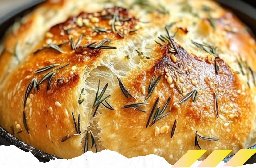 5. Teig mit Olivenöl bestreichen und mit Rosmarin bestreuen. Im heißen Topf 30 Minuten mit Deckel und weitere 10-15 Minuten ohne Deckel backen, bis das Brot goldbraun und knusprig ist.