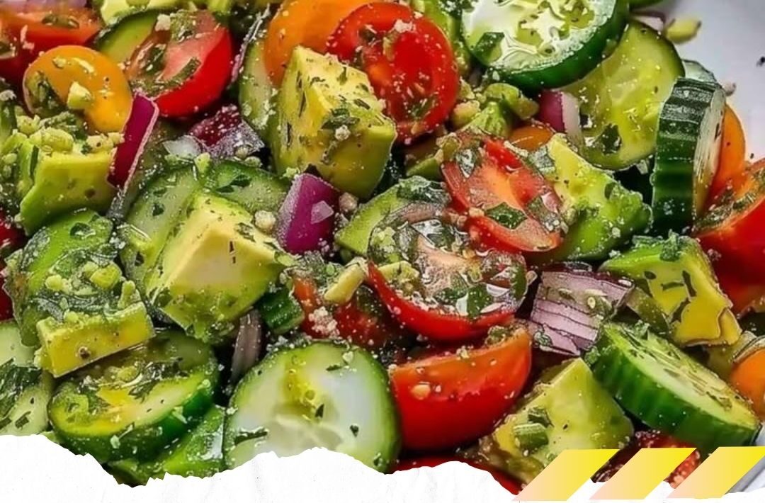 3- Avocado, Tomaten und Gurken hinzufügen und vorsichtig untermischen.