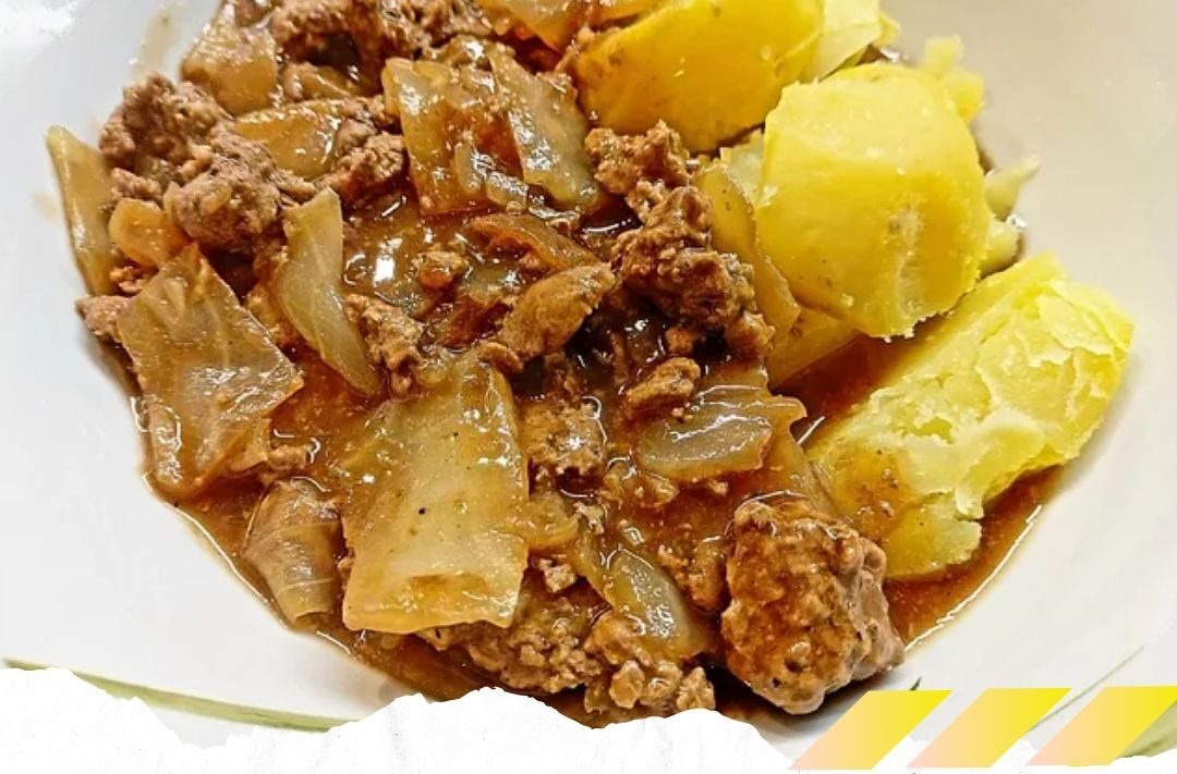 2. Die Zwiebeln hacken und zusammen mit dem Hackfleisch in einer Pfanne ebenfalls auf höchster Temperatur unter Rühren anbraten. Wenn sowohl der Kohl als auch das Hackfleisch schön braun sind, das Hackfleisch zum Kohl in den Topf geben.