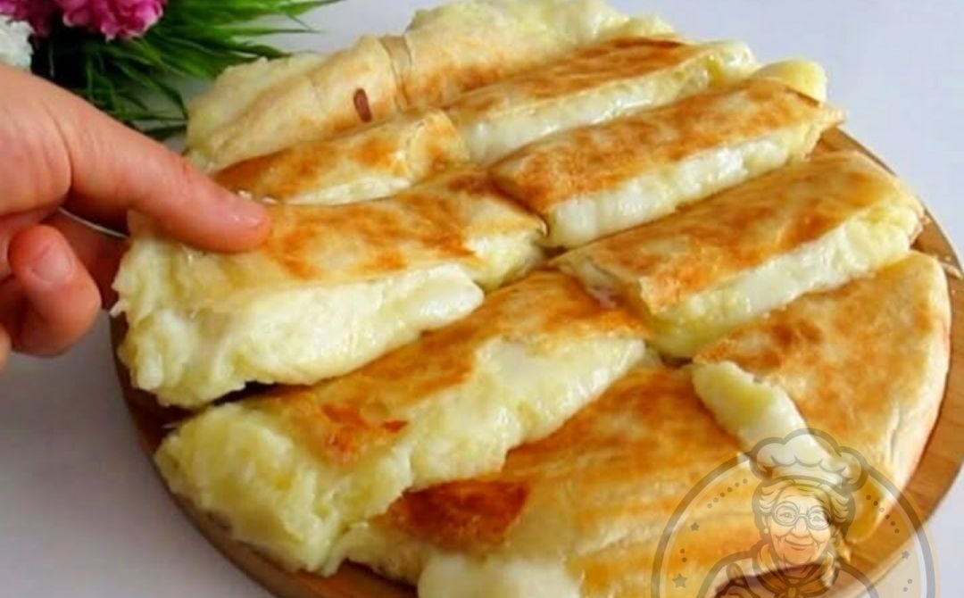 3- In der Zwischenzeit ein Backblech mit Olivenöl bestreichen. Den Käse zerbröseln. Zwei Drittel des Käses in den aufgegangenen Teig einkneten.