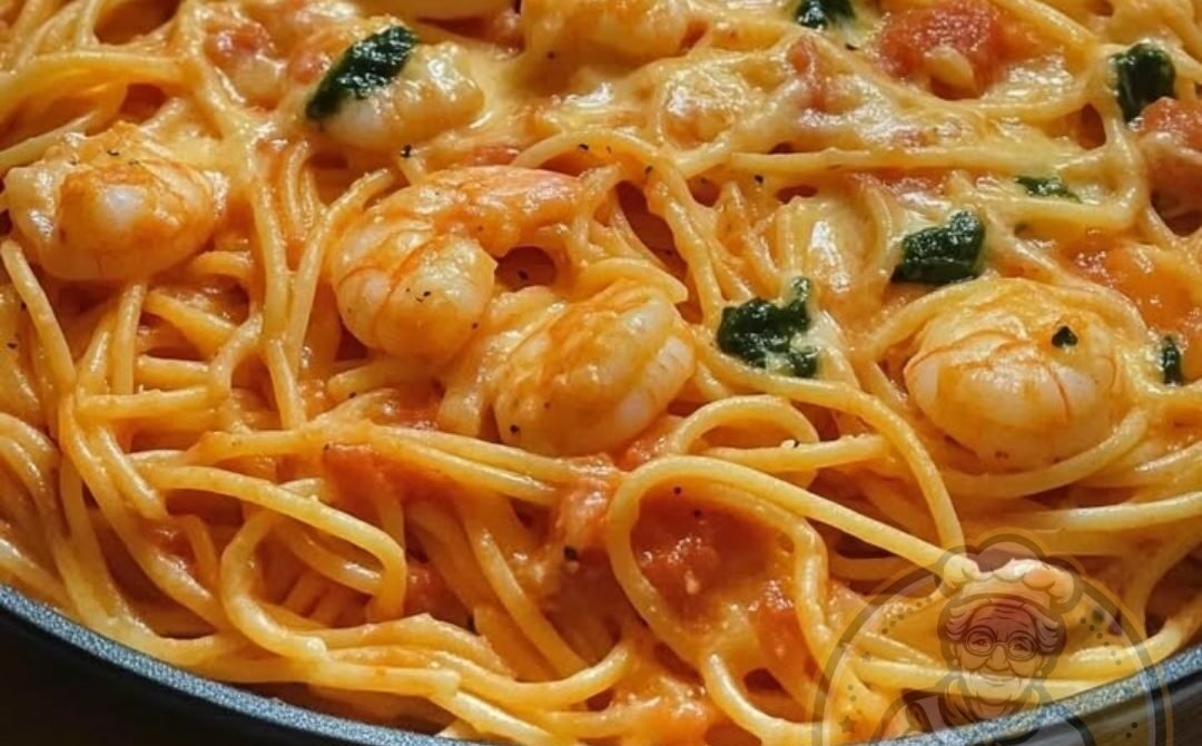 5- Die Garnelen in die Pfanne geben und 3–4 Minuten braten, bis sie rosa und durchgegart sind.