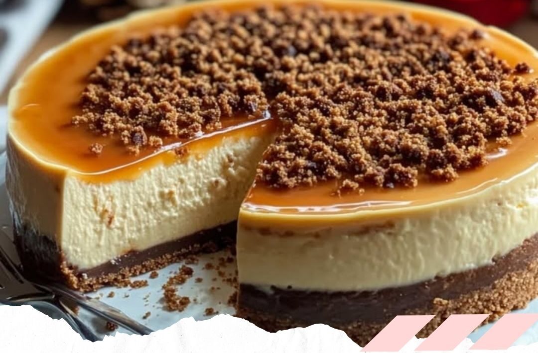 – Verzieren Sie den Käsekuchen mit der Karamell-Spekulatius-Mischung, lassen Sie ihn abkühlen und servieren Sie ihn.
