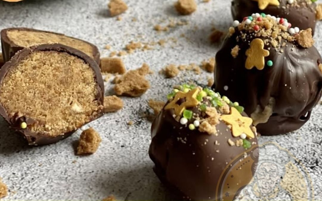 Spekulatius fein zerbröseln, Marmelade erwärmen.