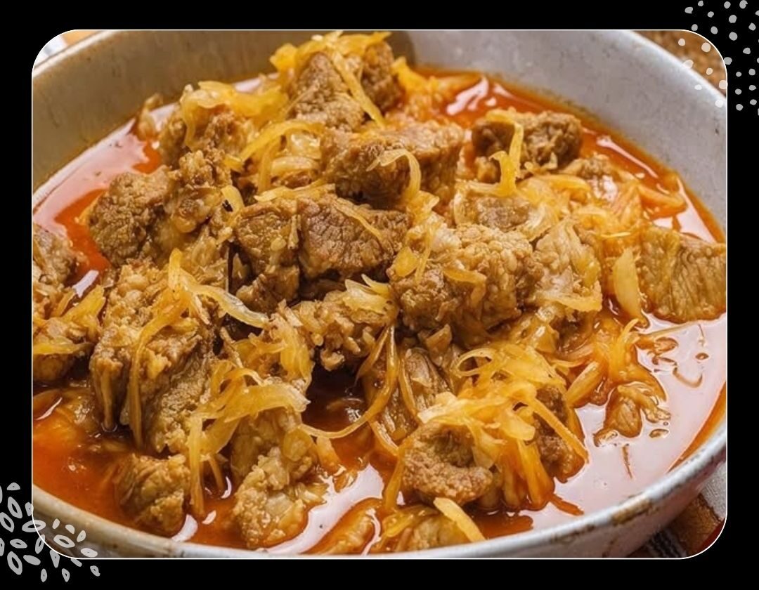 10- Die Speisestärke mit 2 EL Wasser verrühren und das Gulasch damit binden.