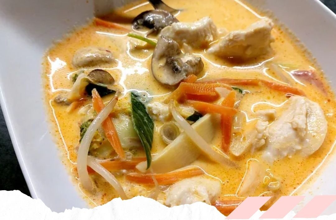 Die Champignons hinzufügen und weitere 5 Minuten kochen. Das Hühnerfleisch unterrühren und wenige Minuten auf kleiner Flamme garen, sodass es zart bleibt. Die restliche Kokosmilch zufügen und mit Limettensaft, Zucker und Fischsauce abschmecken.