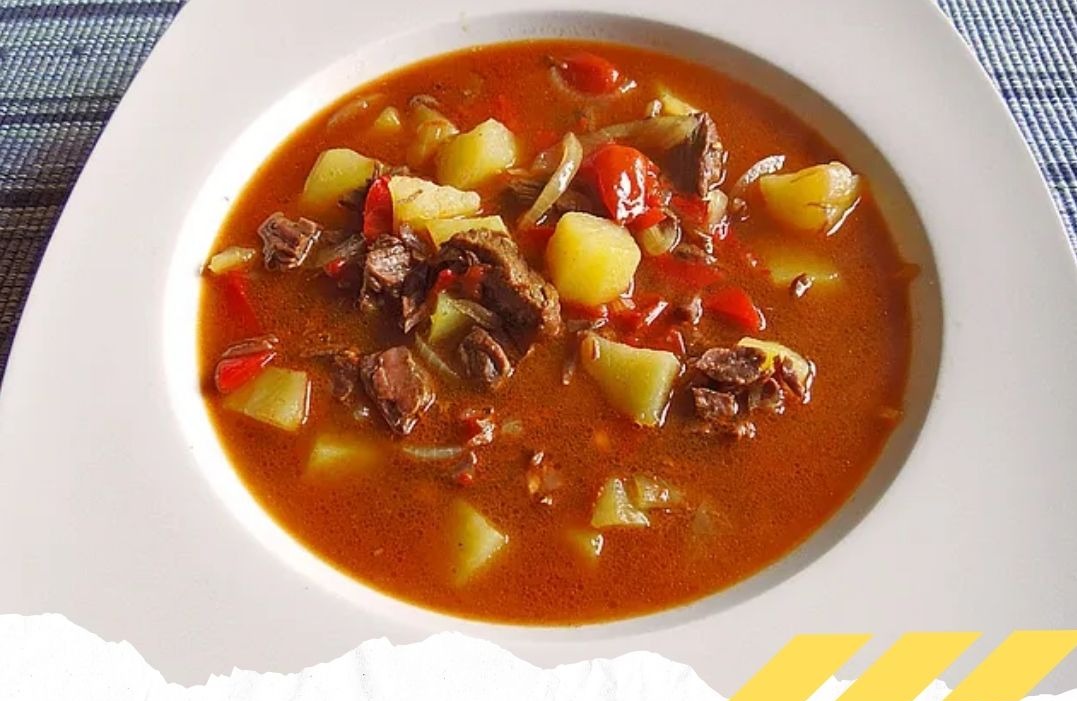 Schweineschmalz in einem Topf erhitzen und das Fleisch darin gut 10 Min. anbraten. Zwiebel und Knoblauch dazugeben und weiterbraten. Mehl darüber stäuben und alles etwas durchschwitzen lassen. Mit Rotwein und Brühe ablöschen, dann Paprikapulver und die Gewürze dazugeben. Das Ganze zugedeckt 40 – 50 Min. köcheln lassen.