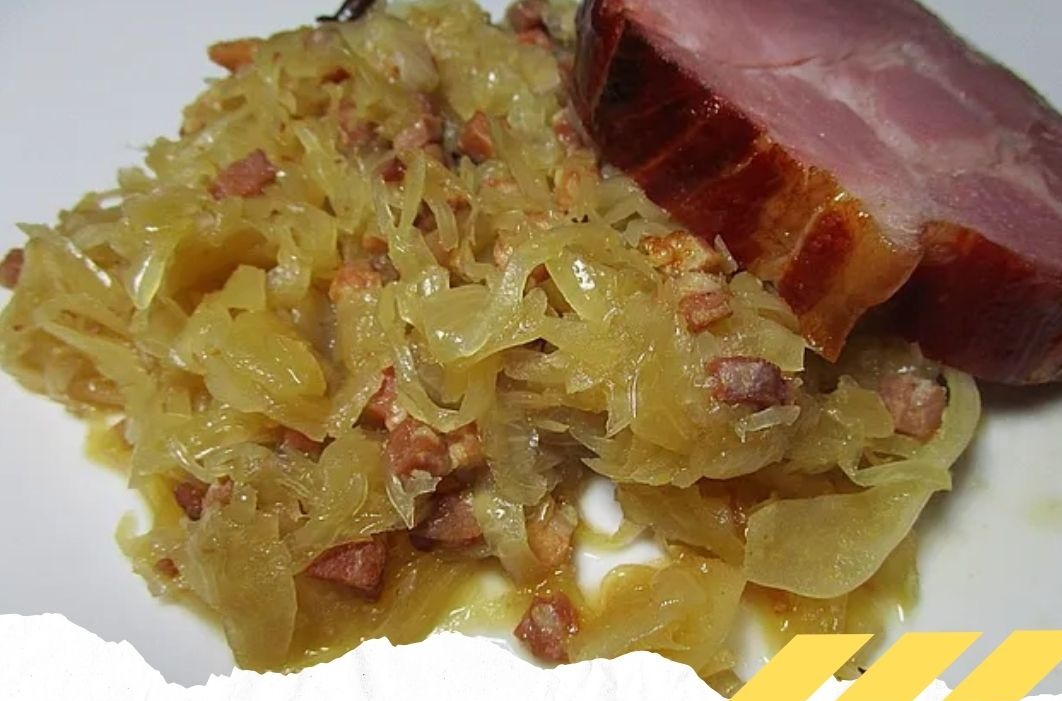 6- Das Sauerkraut ist fertig, wenn es eine schöne bräunliche Farbe hat. Mit Salz, Pfeffer und nach Geschmack etwas Zucker abschmecken.