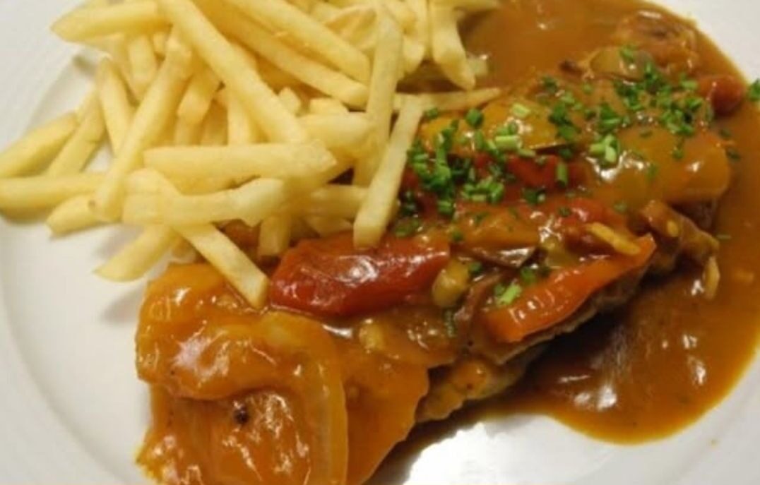 * Die Zigeunersoße darüber gießen, sodass die Schnitzel bedeckt sind.